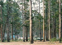 Small unattended fire burns in woods across the road from Gibbon Creek picnic area (W) 8-31-88