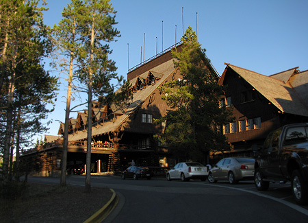 | (left) Guests of the early 20th century would have had a similar view of the Old Faithful Inn as they approached from the west on a summer evening. |
