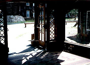 | (above) From an area near the "tree house" at the top of the lobby's interior, a door opens onto the back sloping roof of the Inn, and these steps continue to the top of the Inn, also known as the "widow's walk." |