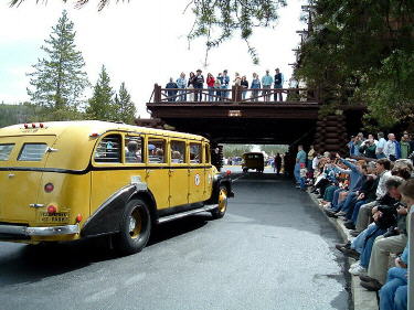 This bus once used daily at Yellowstone in years past returned to the park to transport guests to the opening ceremonies.