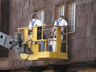finishing touches to isolated areas of the exterior shingling and roofing.