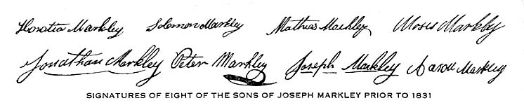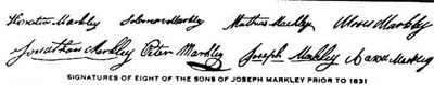 Signatures of eight of the sons of Joseph Markley prior to 1831.
