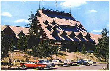 (right) Haynes postcard, showing the Old Faithful Inn as it looked soon after opening in 1904.